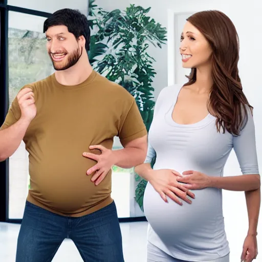 Prompt: “ maternity photo of a pregnant asian gay couple, skinny, handsome ”