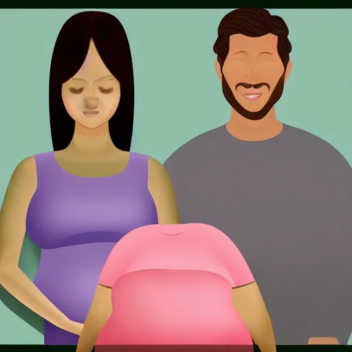 Prompt: a front view family portrait of a smiling hispanic pregnant lady illustration, trending on artstation