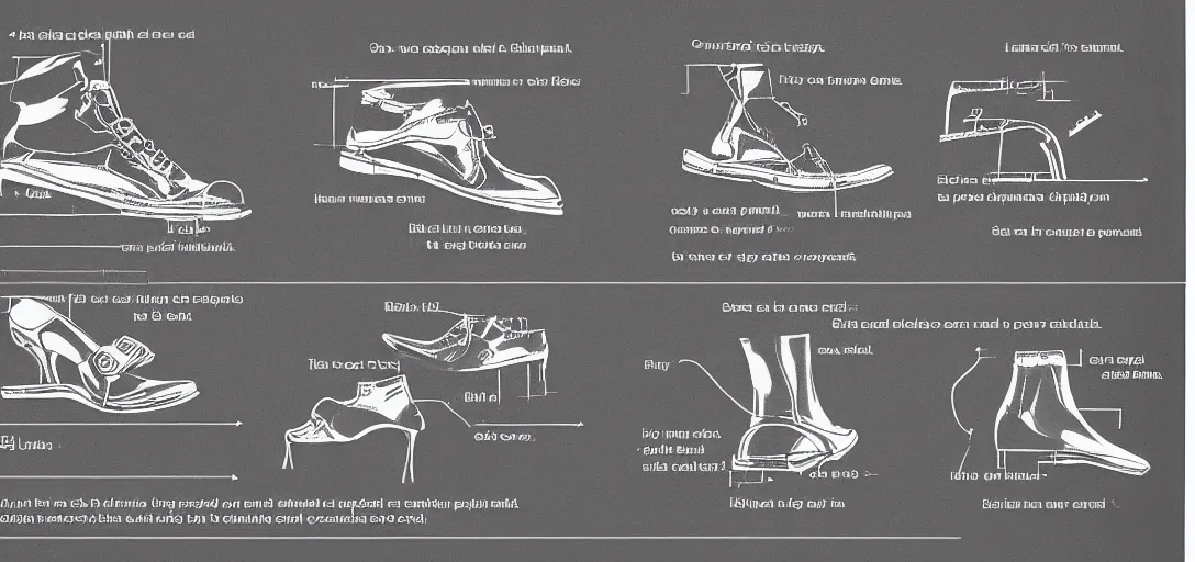 Extremely complex instruction manual for putting on shoes, with numerous detailed schematic diagrams.