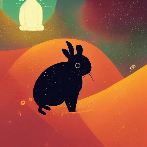 A rabbit full of hope, looking for a black hole in an infinite time loop by Victo Ngai and Ghibli andlisk feng and atey ghailan