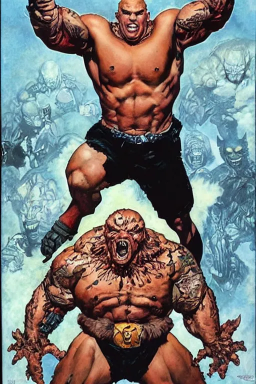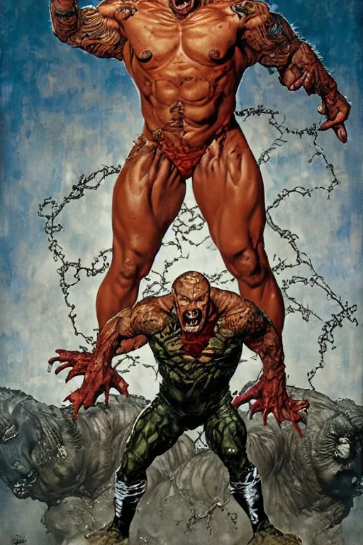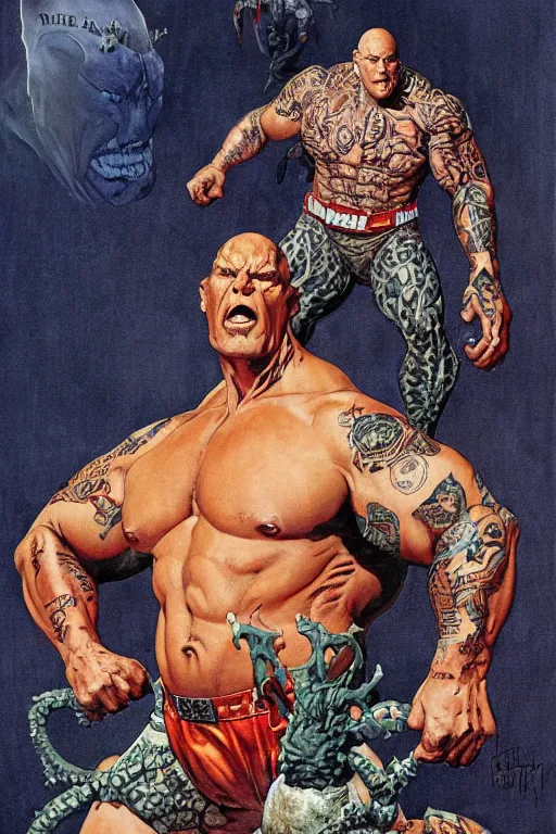 full body and head portrait of martyn ford as marvel's the thing, dynamic action, painted by norm...Show more