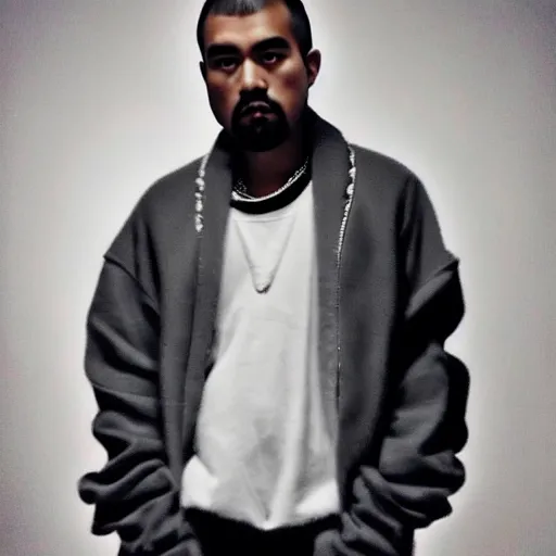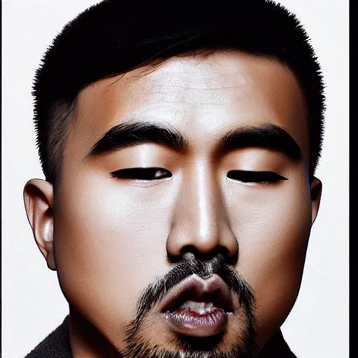 Prompt: fisheye lens zoom in of Kanye West’s face