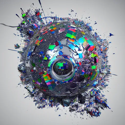 abstract 3D object made out of chrome on a white background dripping on the floor by David McLeod...Show more