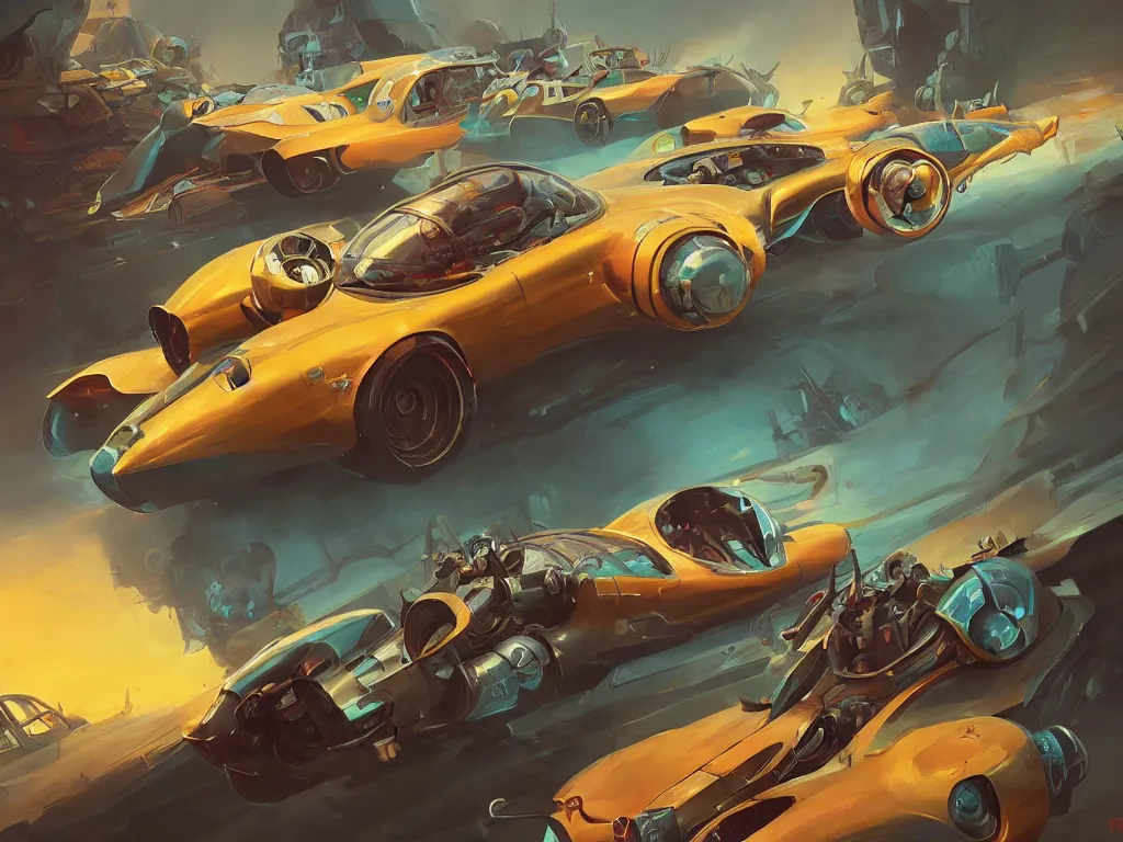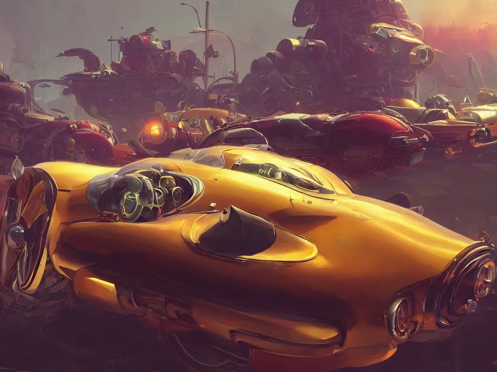 retrofuturism 1950s style automobile, bright art masterpiece artstation. 8k, sharp high quality a...Show more