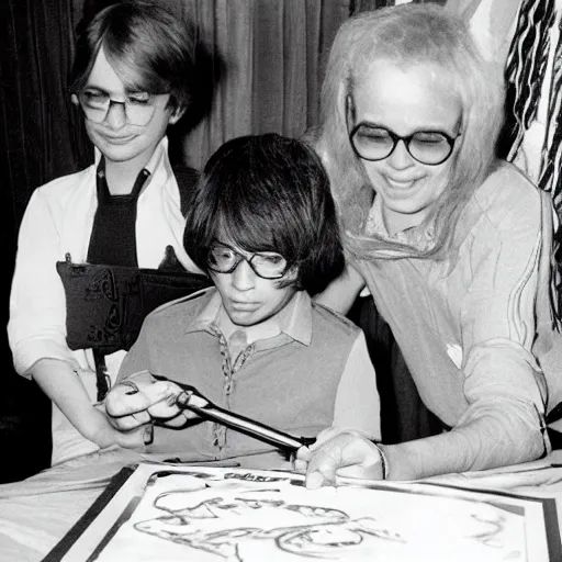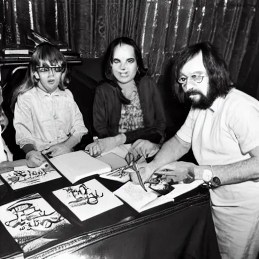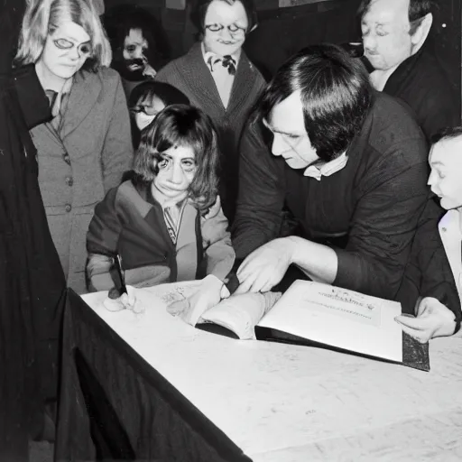 Abdul Alhazred signs Necronomicons at a book signing event, 1974 vintage photo