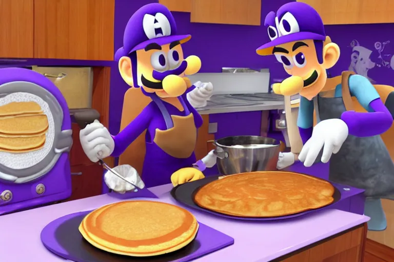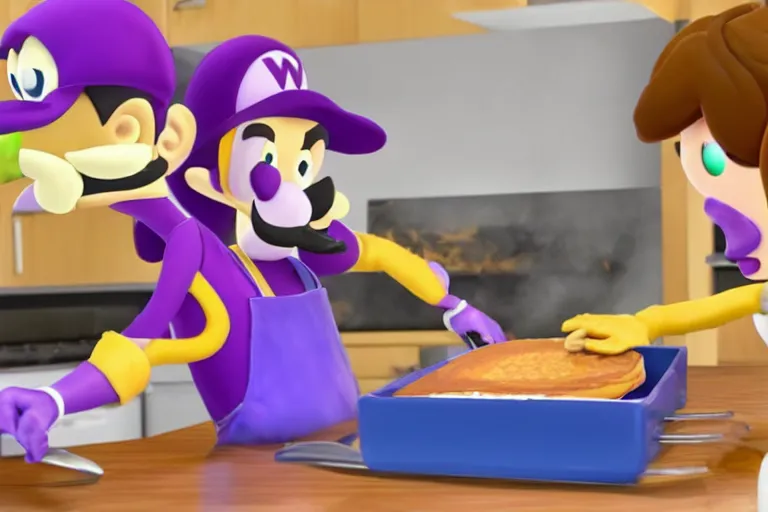 Prompt: waluigi from mario kart wearing a cat costume from peach, epic, unreal engine
