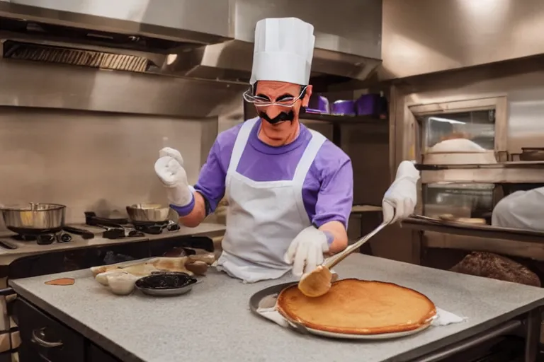 Prompt: waluigi screaming and running away from gordon ramsay who happens to be wearing a turkey costume
