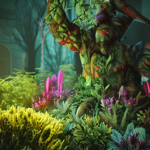 creatures and colorfull plants,cinematic lighthing,nightmare,horror,octane render,