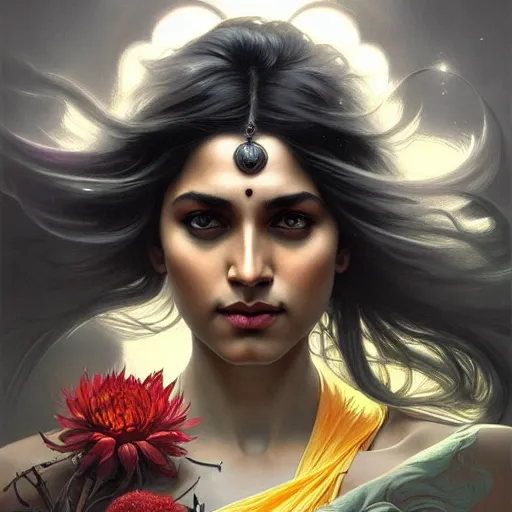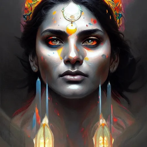 Ramesh Raskar , colorful painting on grey scale face, powerful , magic, thunders, dramatic lighti...Show more