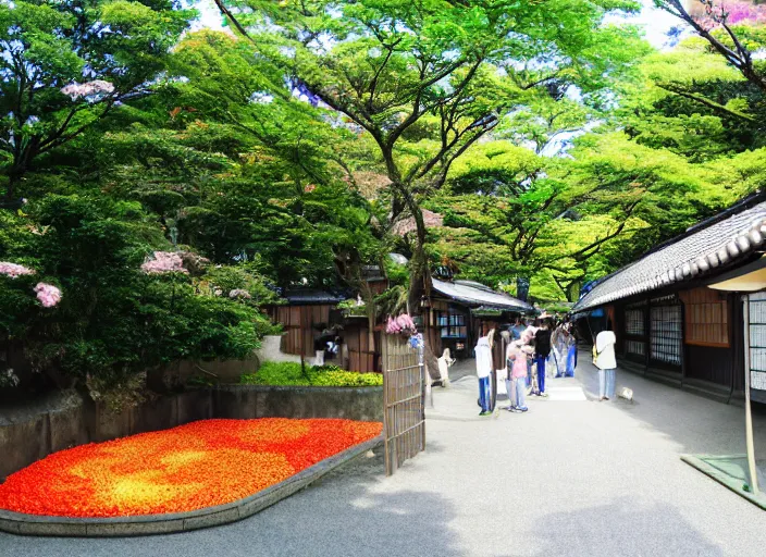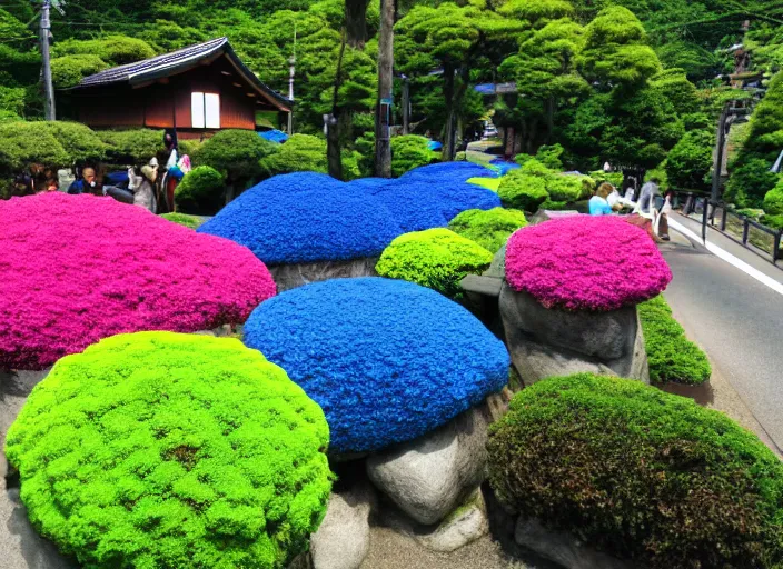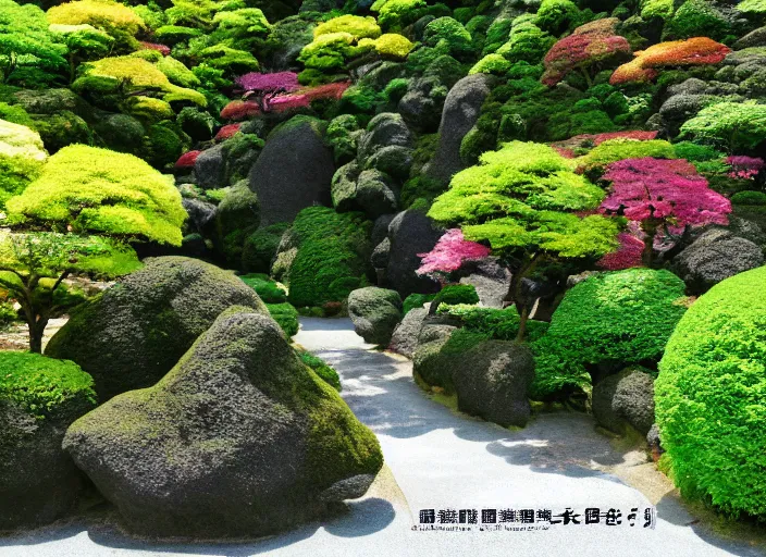 Prompt: japanese garden by yayoi kusama, ultra realistic, highly detailed, symmetrical, enchanting, vibrant,