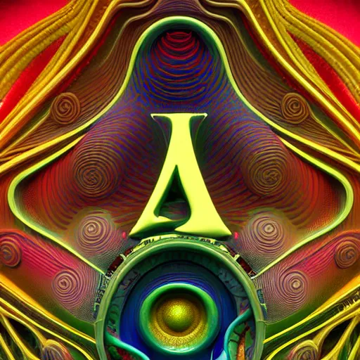 ultra detailed scifi design of the the letter A in a generative 3D style, asymmetrical, fungal, intricate concept art, triadic color scheme, by alphonse mucha and Mandelbrot, octane render, 4k,