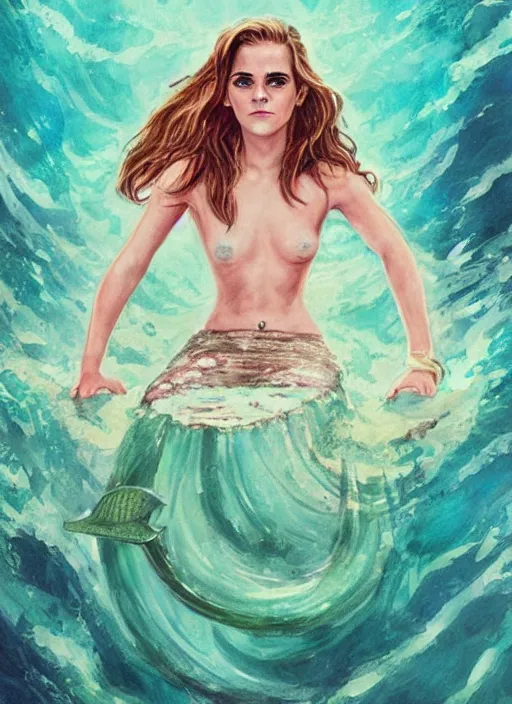 Emma Watson as a mermaid, portrait by Patrick Gleason