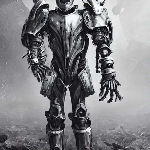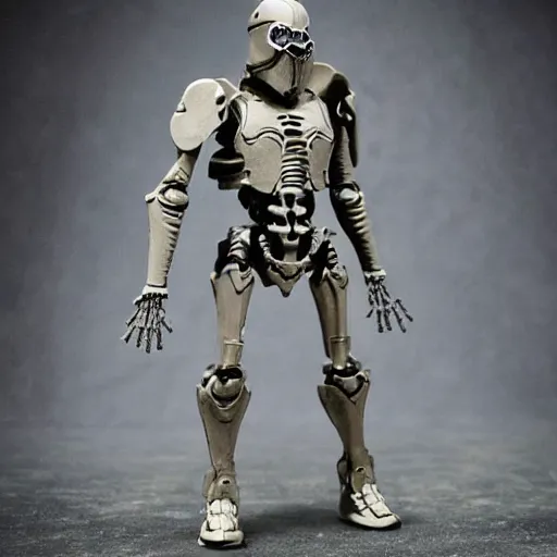 a dusty skeleton!!!!! in futuristic marine armour in a dusty brick room