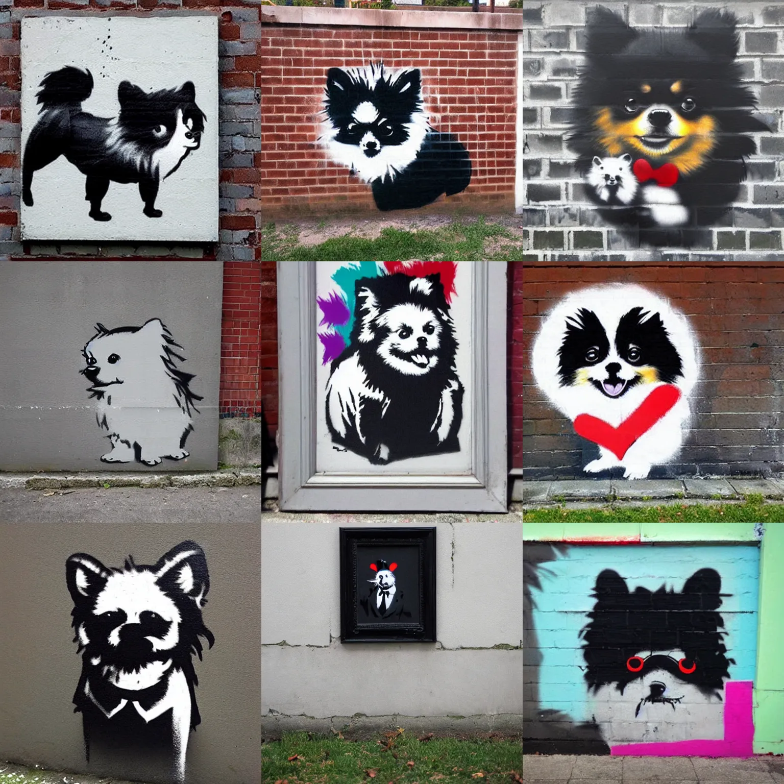 pomeranian banksy by banksy on wall with spray paint