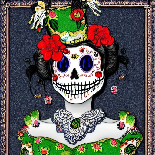 Prompt: illustration of a sugar skull day of the dead girl, art by leandro erlich