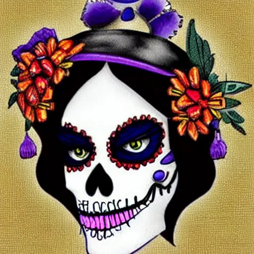 Prompt: illustration of a sugar skull day of the dead girl, art by natalie shau