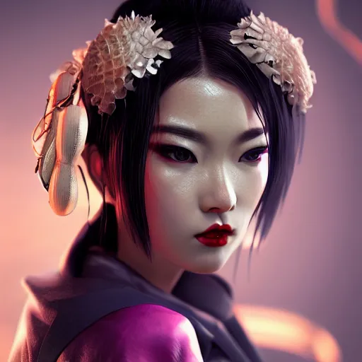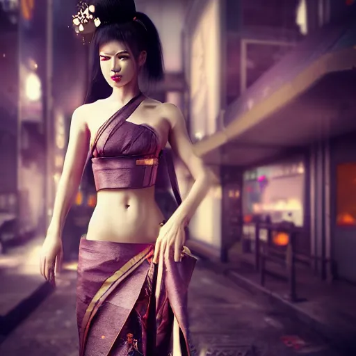 !dream cyberpunk geisha, full body, cinematic lighting, beautiful face, ultra detail, ultra realistic, photo realistic, octane render,
