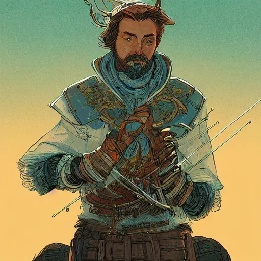 portrait of a bard, standing, Borderlands and by Feng Zhu and Loish and Laurie Greasley, Victo Ngai, Andreas Rocha, John Harris