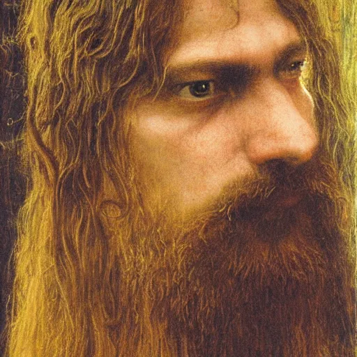 Close-up portrait of a druid, by Jean Delville
