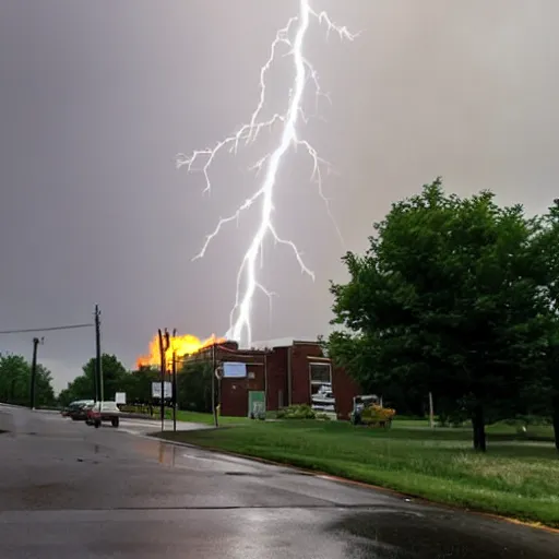 a Smokestack in Bridgeport getting Struck by Lightning