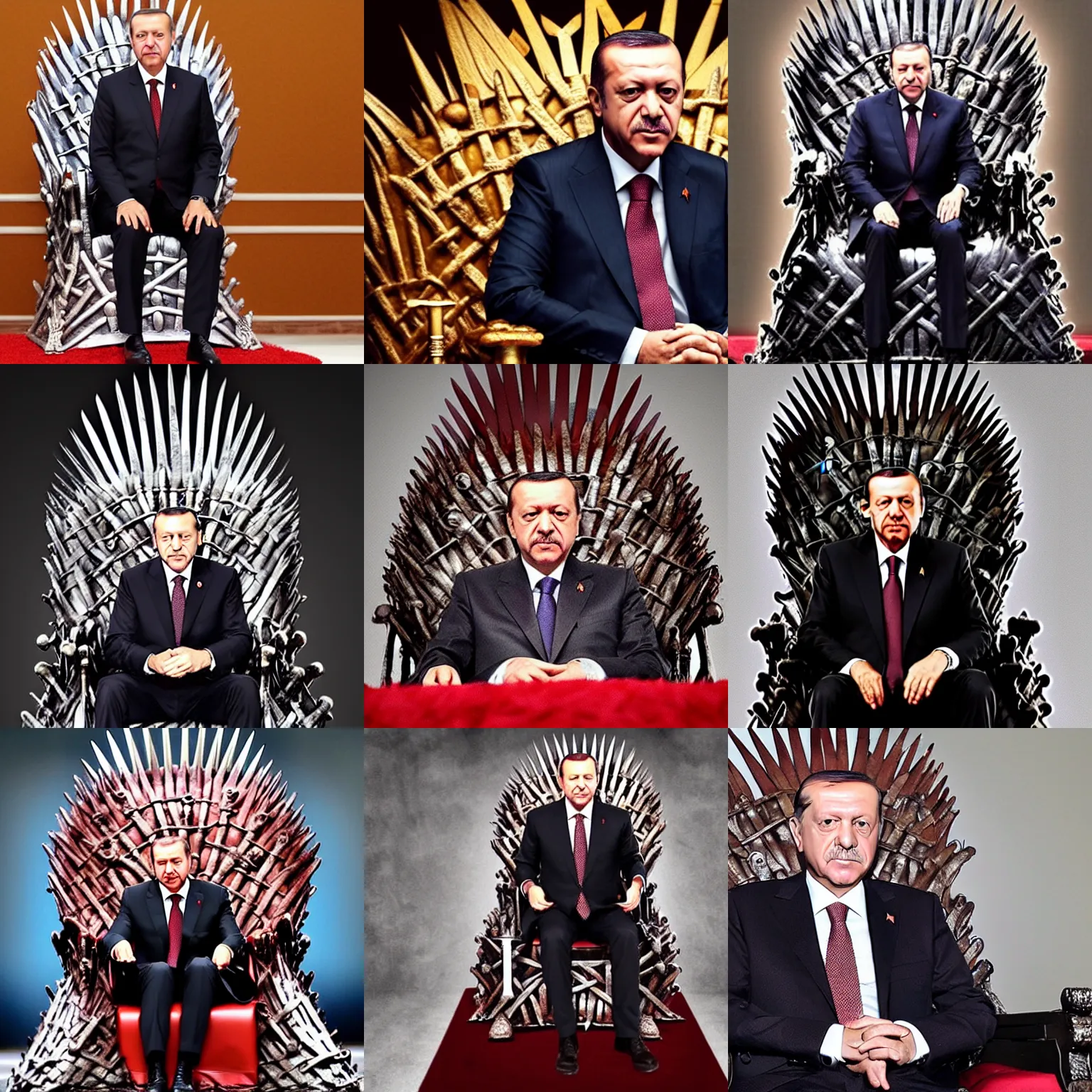 Recep Tayyip Erdoğan sitting on the Iron Throne, 4K