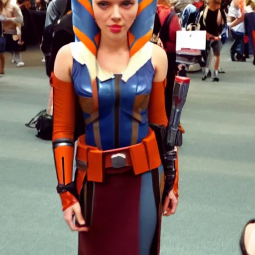 Scarlett Johansson cosplaying ahsoka tano at a convention, 35mm