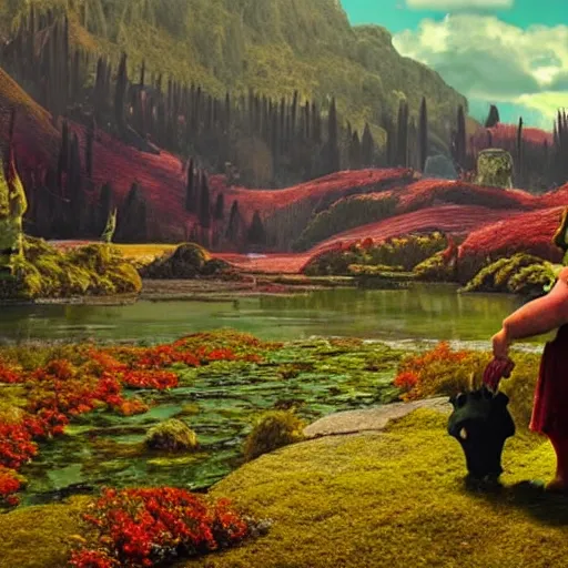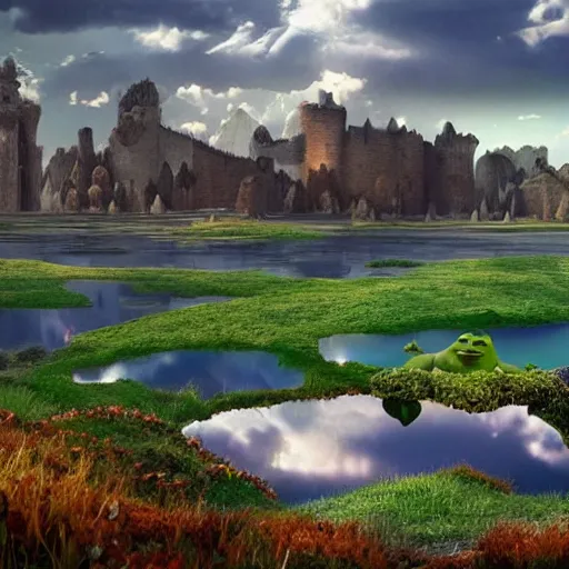 BEAUTIFUL LANDSCAPE WITH LAKES MADE OUT OF BLOOD, REALISM, HELL, 8K, SHREK CONSUMES BONES, 100K, UNREALESED SHREK MOVIE, 8K