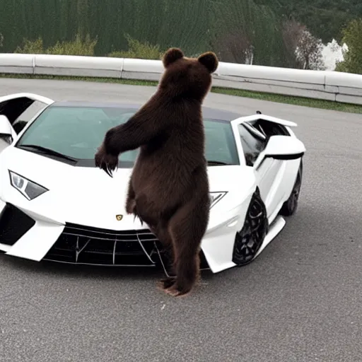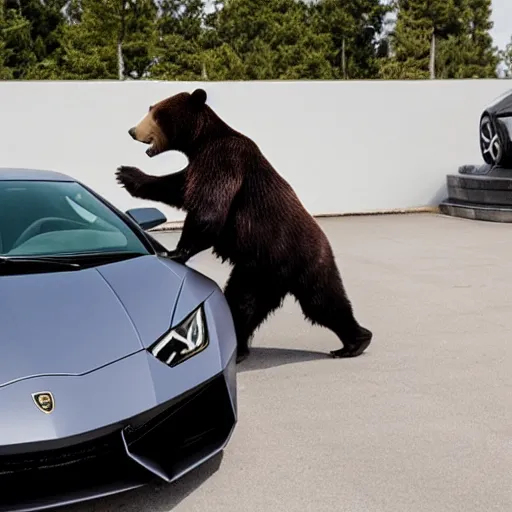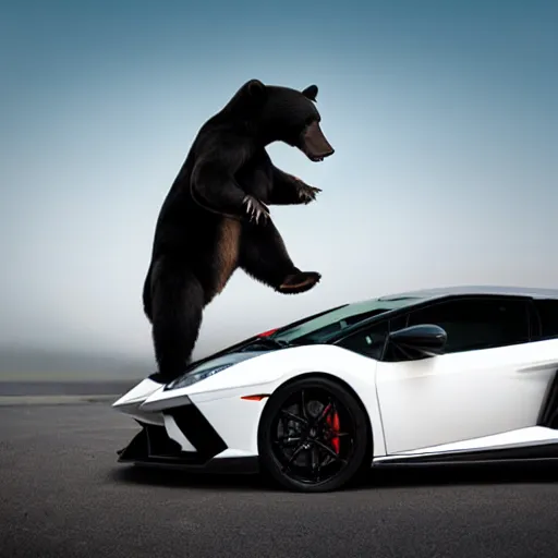 bear dancing on the roof of Lamborghini car