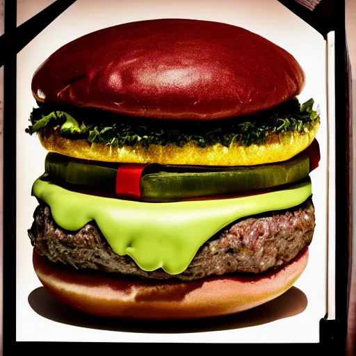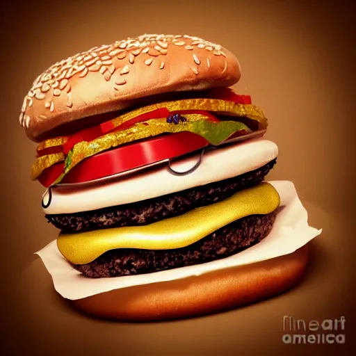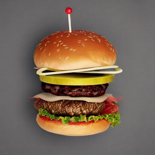 a hamburger made out of musical notes. Surrealist art studio photography