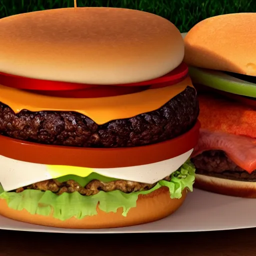 A Burger made by HowToBasic, Realistic, HDR, Clear Image, HDD, RTX ON,