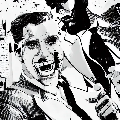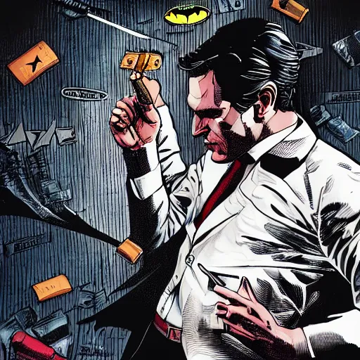 an illustration of patrick bateman fighting batman, highly detailed, 4 k, artstation