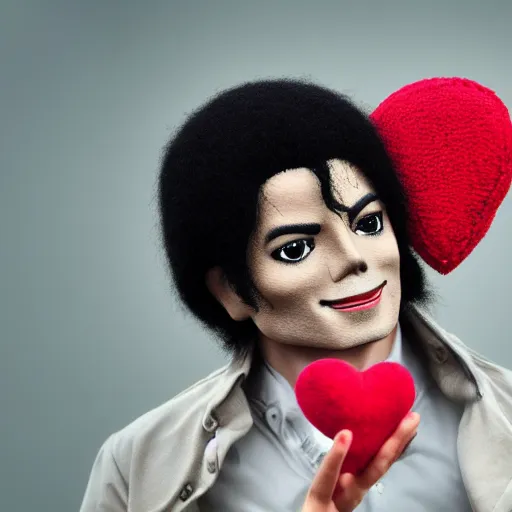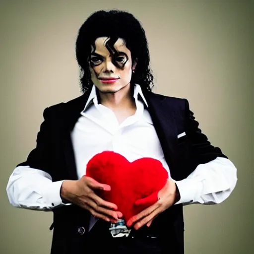 photography of michael jackson holding a plush heart, 4 k, highly detailed, hd