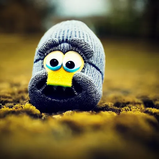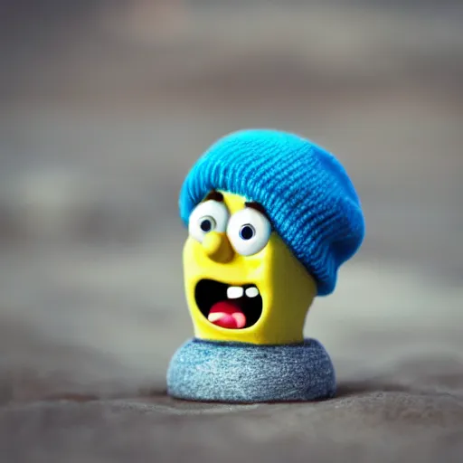 sponebob in a beanie, photorealistic, soft focus, depth of field,