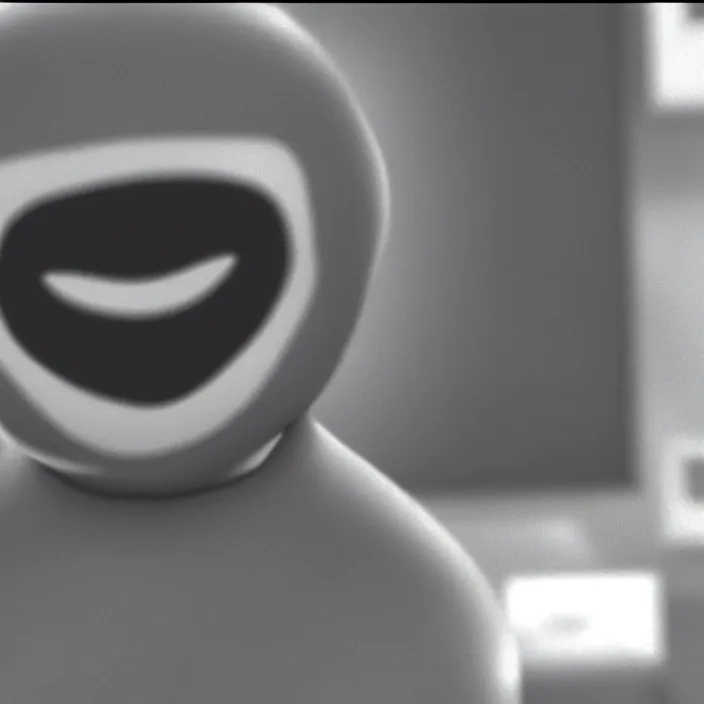cctv footage of an uncanny figure smiling at the camera, creepy