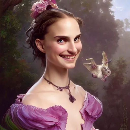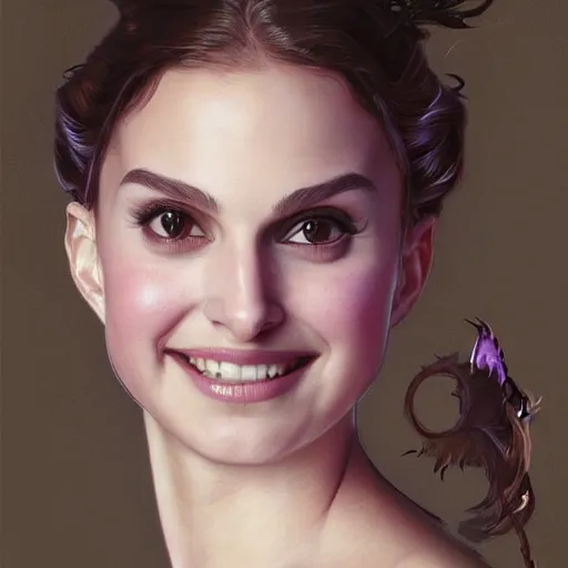 smiling cheshire cat, portrait of a young natalie portman, intricate, elegant, highly detailed, d...Show more