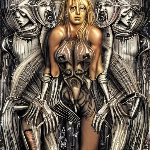 britney spears obscene biomechanic, complex scene, rich composition, heavy in detail, corruption, symmetrical, smooth, sharp focus, airbrush, illustration, art by h. r. giger