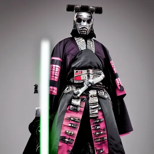 vogue magazine half length portrait photo of a cyberpunk samurai with a lightsaber katana