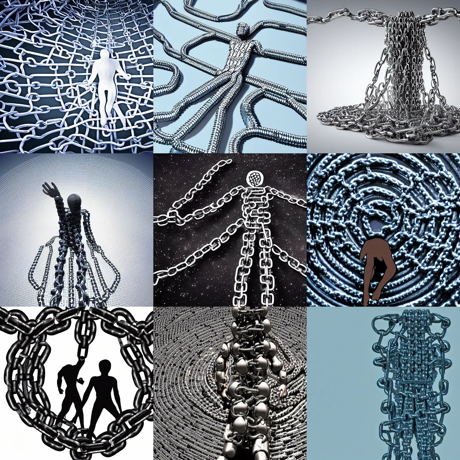 human made of chains getting changed to a big space ship