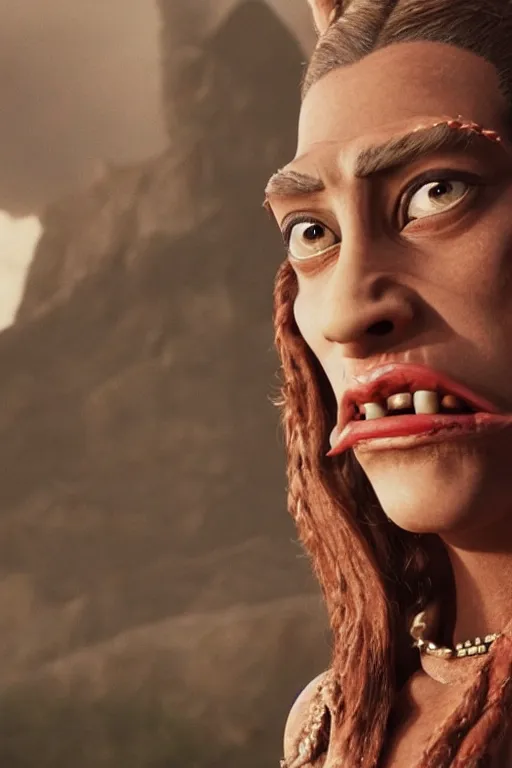 film still of jar jar binks as a female cowgirl, long eyeslashes, big juicy lips, big seductive e...Show more
