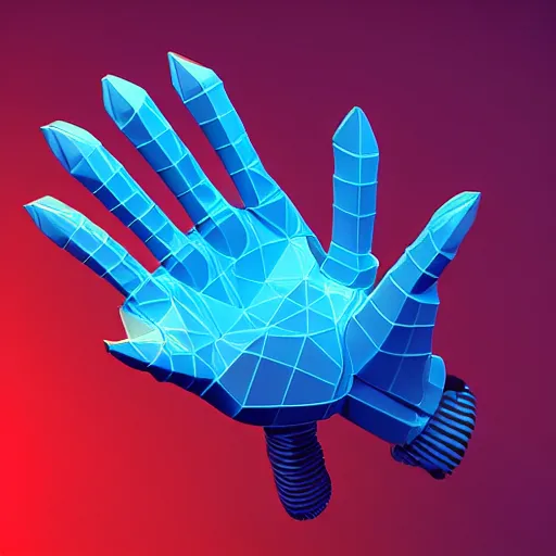 abstract computer generated image of a robotic hand, dystopian, a low poly render by gabriel dawe, surrealism, trending on polycount, generative art, low poly, rendered in cinema 4 d, terragen