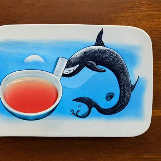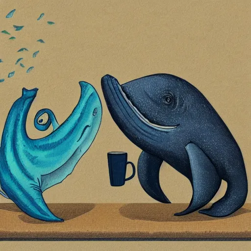 a whale and a sea monster sharing a cup of tea
