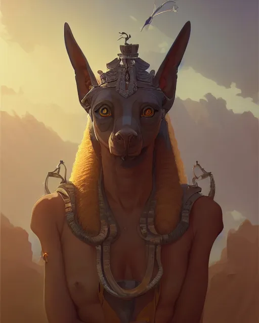 highly detailed surreal vfx portrait of a anubis, stephen bliss, unreal engine, greg rutkowski, l...Show more