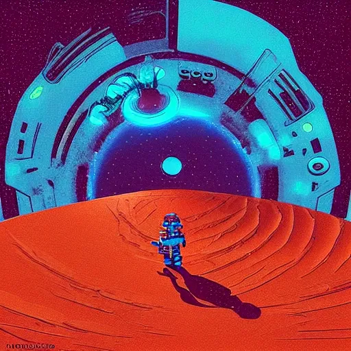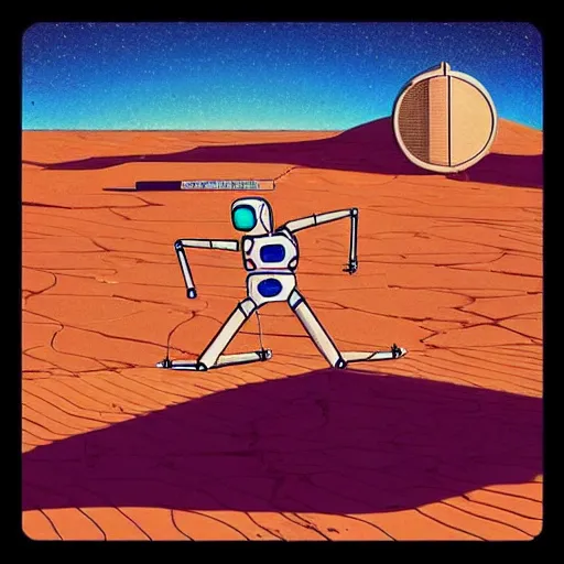 “ a picture of a shiny chrome robot walking through outer world desert, a retro chrome sci - fi a...Show more