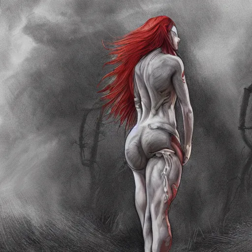 elden ring art, concept art, highly detailed, malenia staying and looking on burning erd tree, ripped skirt, tired woman, bloody back fantasy art, digital drawing, arstation trends, 4 k