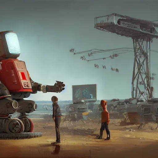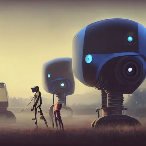 viktor orban protecting people from robots in a painting from stalenhag, 4 k, 8 k, hdr, artstation, concept art