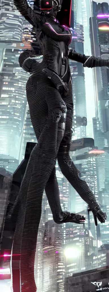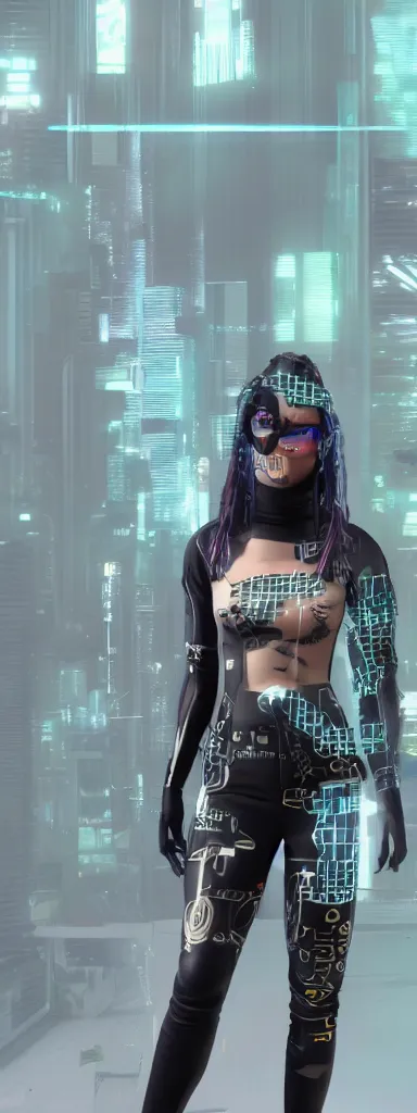 a full body portrait of a cyberpunk model in futuristic clothing | photorealistic | rendered in high octane