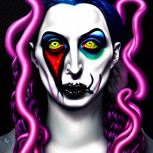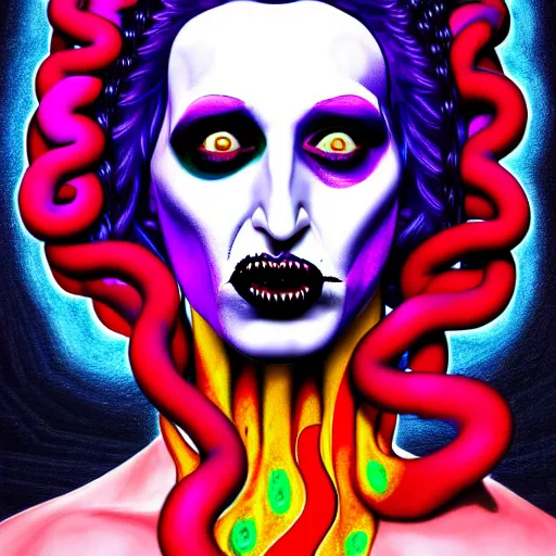 an extremely psychedelic portrait of medusa as marilyn manson, surreal, lsd, face, detailed, intr...Show more