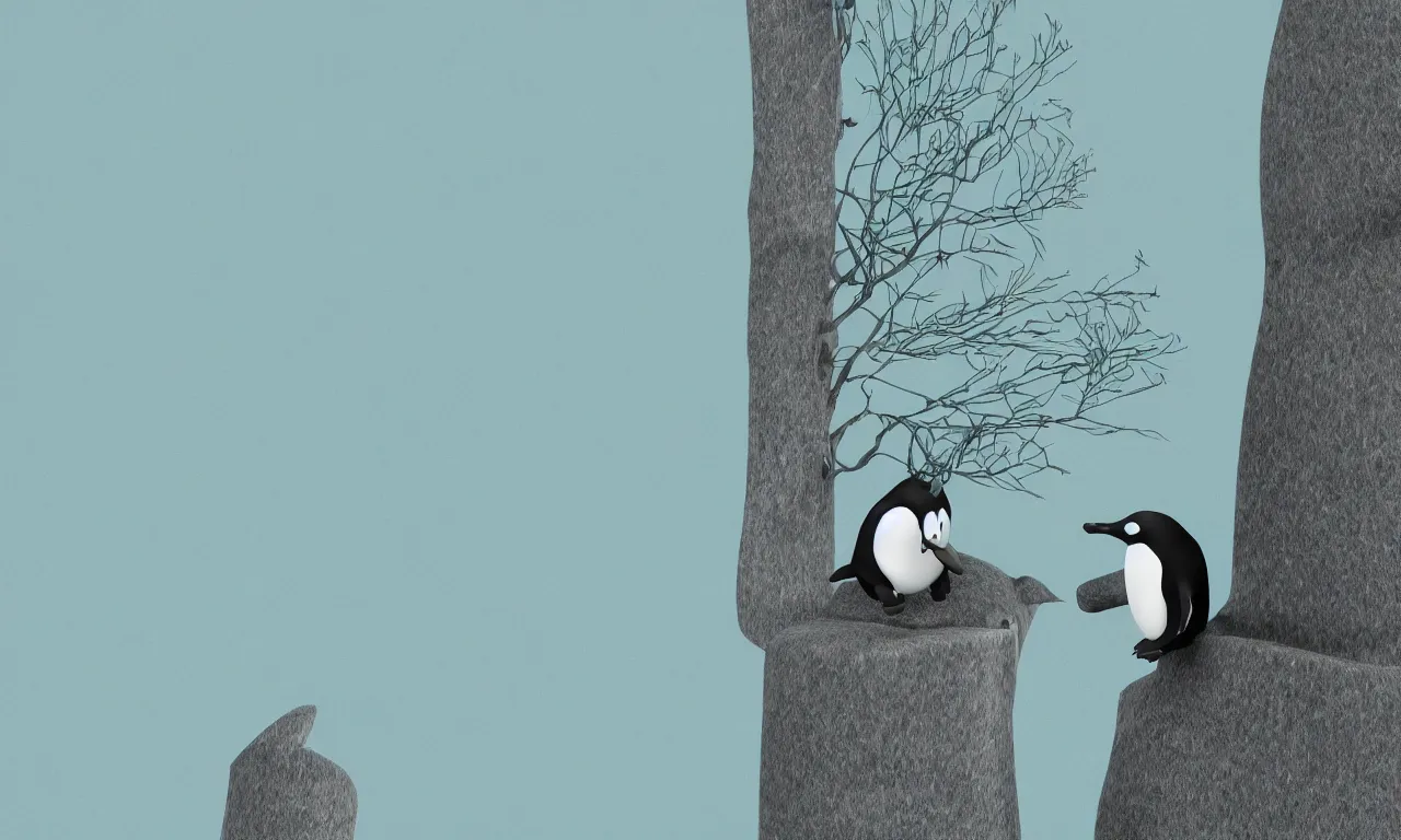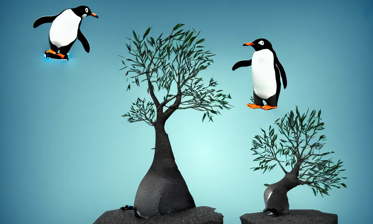 penguin building a tree, digital art, 3 d illustration, transparent backround