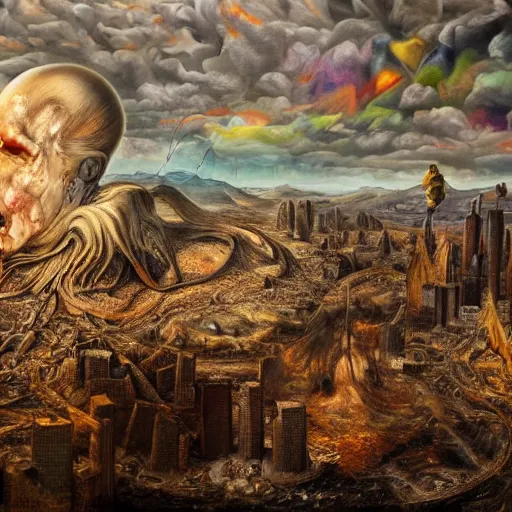the destruction of human morality, 4 k, highly detailed, surrealism