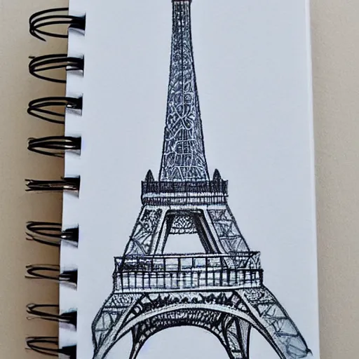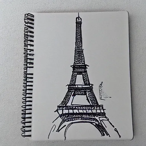 the eiffel tower sketched on a notebook